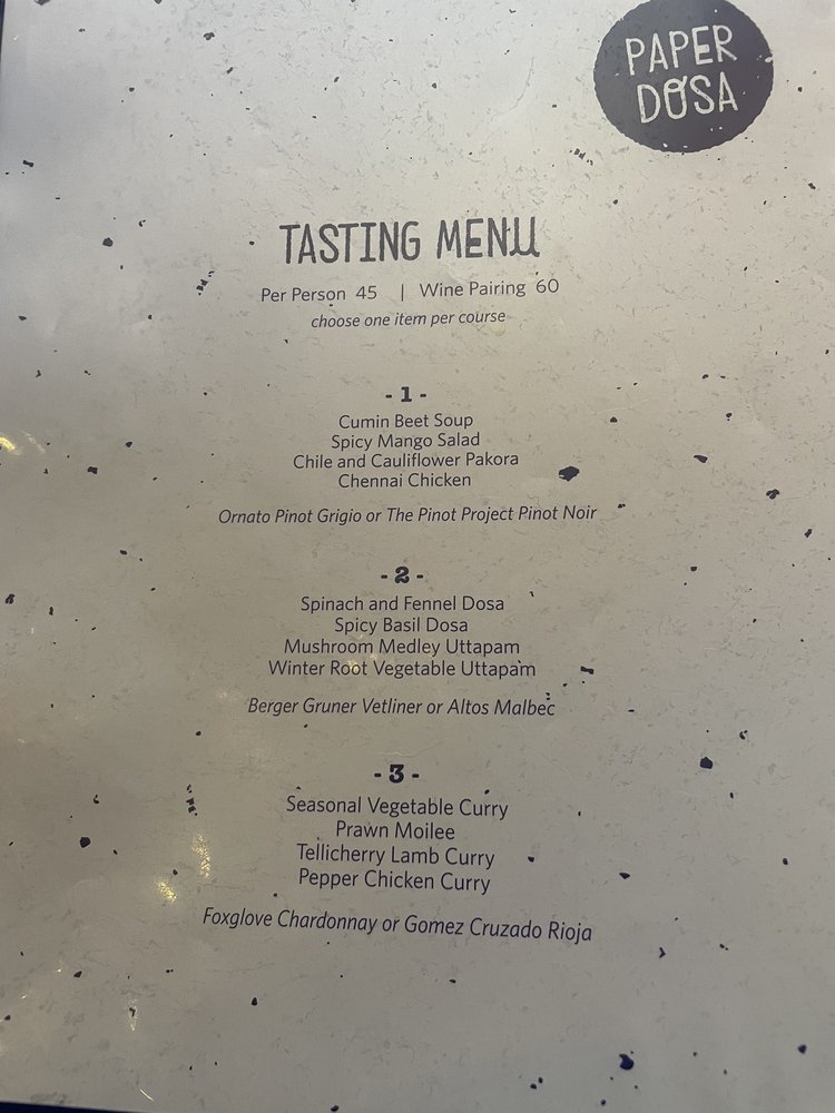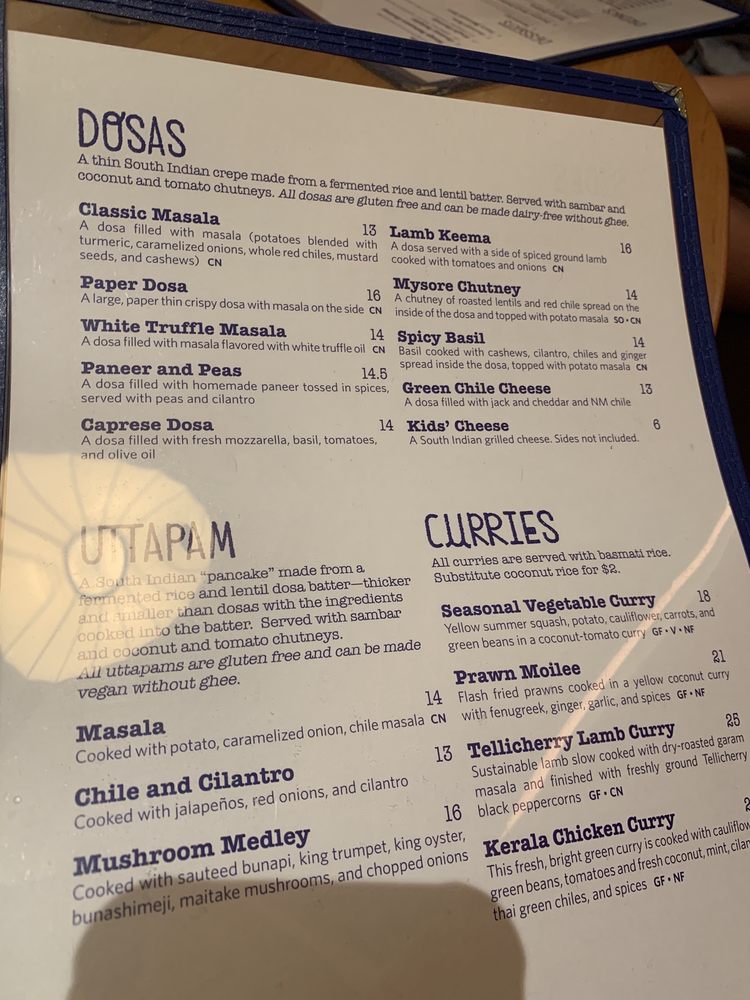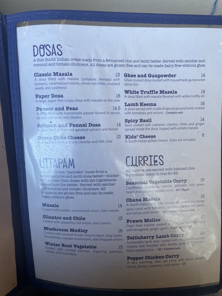 Discover the flavors of Paper Dosa, located in Santa Fe, NM. This Asian-owned gem offers a range of dosas and uttapam with gluten-free and vegan options available. Start your meal with Vada Sambar Sambar or Chennai Chicken for a taste of authentic Indian cuisine. The Paper Dosa, a crispy thin dosa served with masala, is a customer favorite. Reviews rave about the flavorful curries and unique dosa options like the Spicy Basil and White Truffle Masala dosas. Don't miss out on the vibrant chutneys and sambar that accompany each dish, adding an extra layer of taste. With excellent service and a menu full of savory delights, Paper Dosa is a must-visit for food enthusiasts seeking rich and delicious flavors.