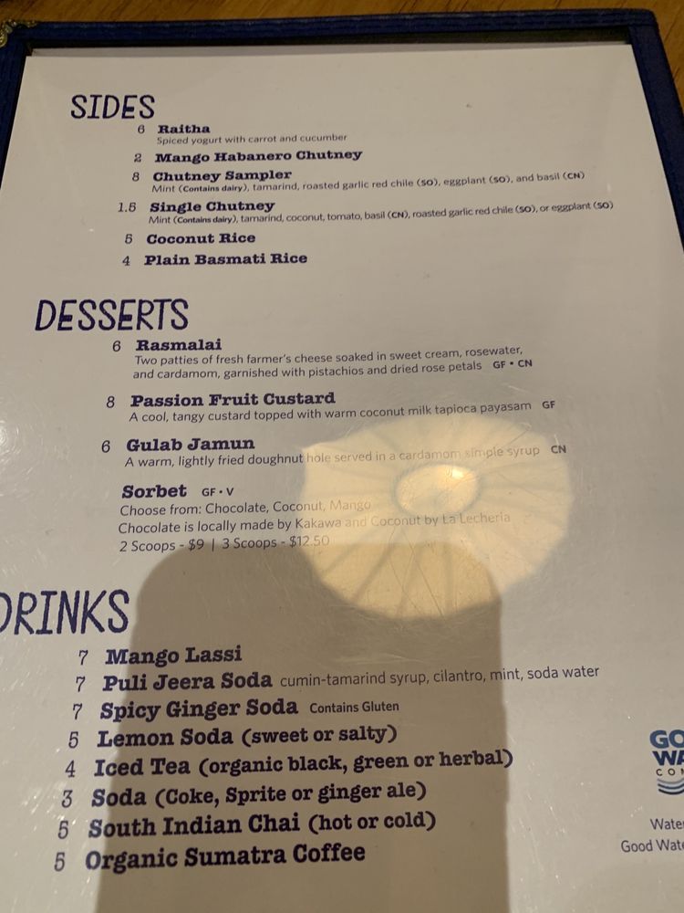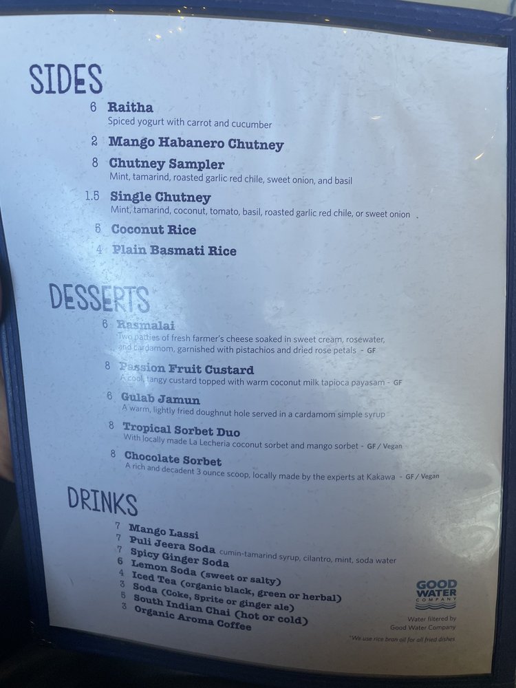 A South Indian grilled cheese. Sides not included. Gluten-free. Vegan option: vegan.